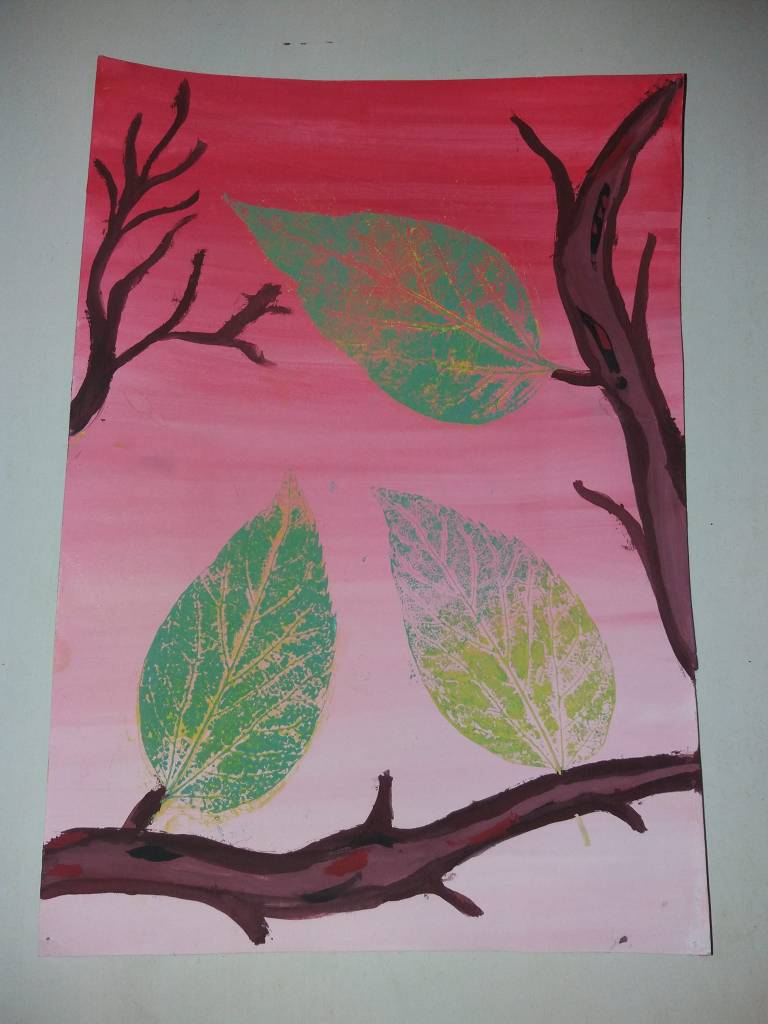 Óbudai Aelia Sabina-s előképzős és alapképző második osztályos tanítványaim levélnyomatos gouache festményei. Mindenki saját színtervben gondolkozott, nagyon szerettük ezt a munkát.