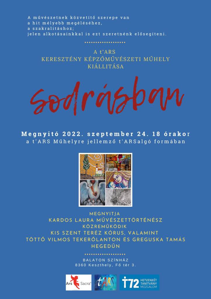“Sodrásban” – a keszthelyi kiállításunk mottója, témája. Sok gondolatom volt a szeretet sodrásáról, hullámairól, vonalak és színek dinamikájáról – a sok ötletből végül is csak két kép született meg a megnyitóig, mint felütés, kezdet.