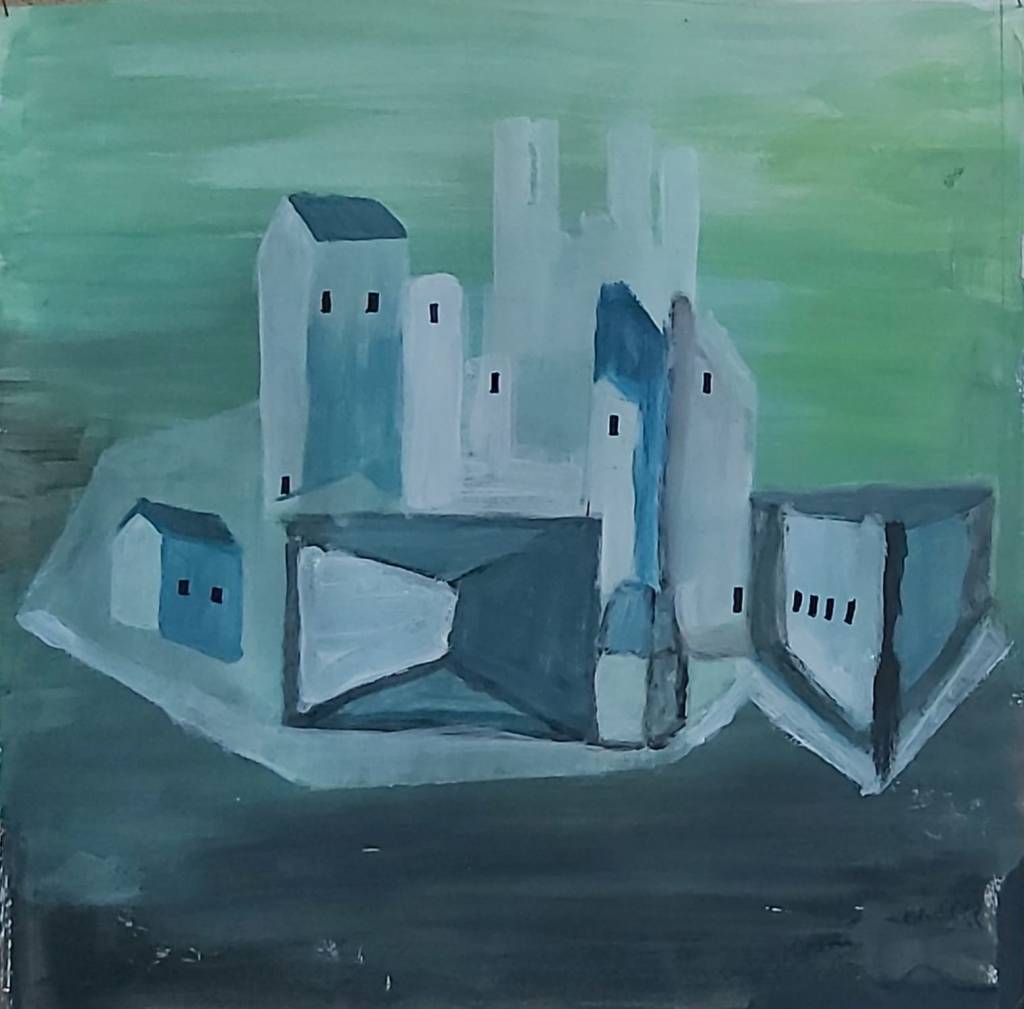 A holnapi mester-tanítvány kiállításra készülve…Negyedikes tanítványom, Rumpler Henrik ceruzarajza.Rumpler Henrik alkotása saját grafikája alapján. Első akrilfestménye, az alapot, hátteret közösen festettük.