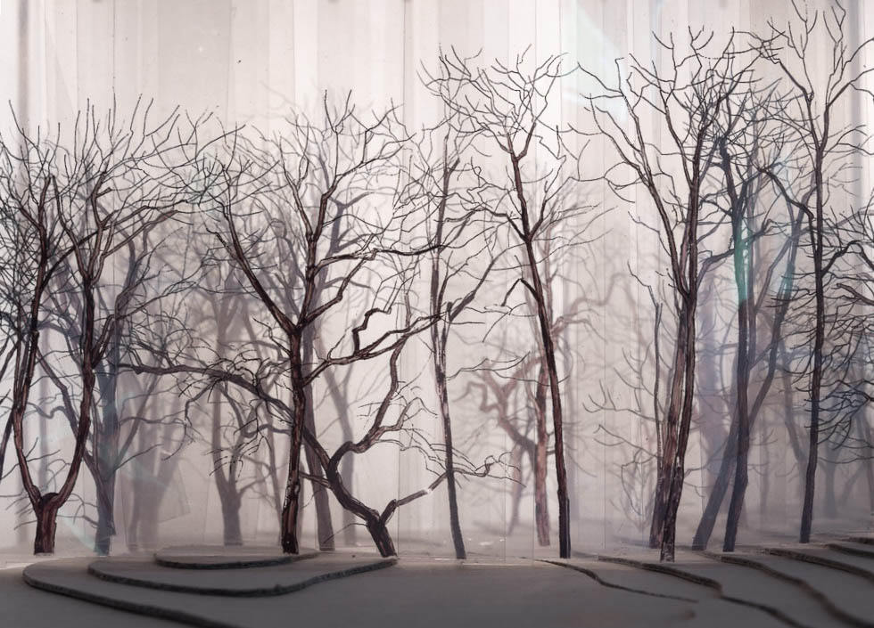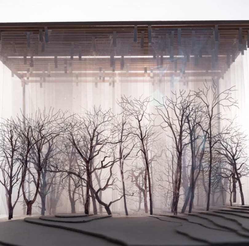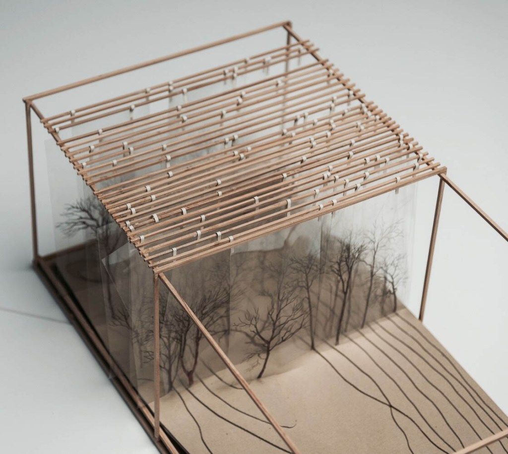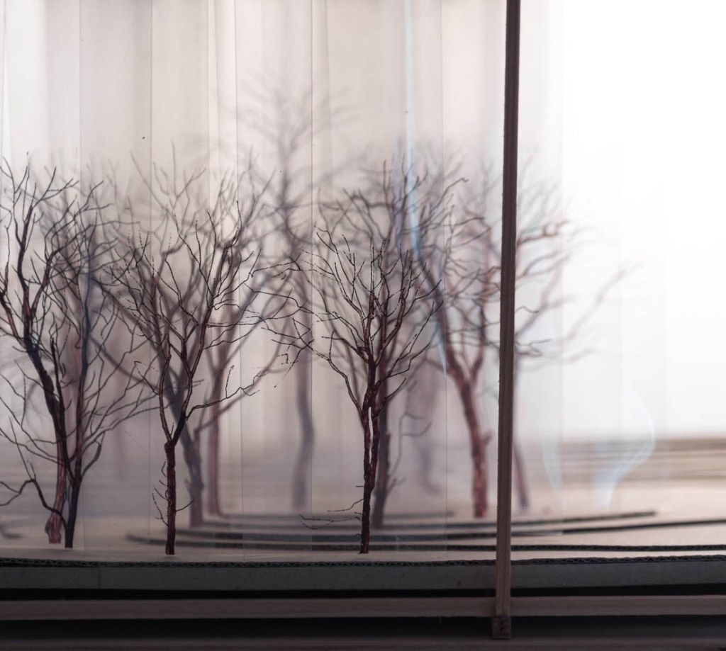 Pályám elején rövid ideig (2 év) dolgoztam Kis Péter építészműtermében, aki akkor az Állatkert főépítésze volt, így vadregényes módon hol az elefántok, hol az oroszlánok felett volt az irodánk. Akkor készült ez a kiemelt képen is látható makett a margitszigeti Vadasparkról, egy oda tervezendő épület kapcsán. A fákat én rajzoltam le a helyszínen – kétirányú portré készült külön-külön minden fáról, melyeket fóliára nyomtattunk és a helyükre függesztettünk-, Szlabey Balázs készítette a terepmakettet, Lisztes Edina fotózta be a kész munkát. Szerintem szép és különleges atmoszférájú lett a végeredmény… A képek a PLANT építésziroda honlapján ma is láthatók, az ide tervezett épületet 2002-ben Piranesi-díjra jelölték.