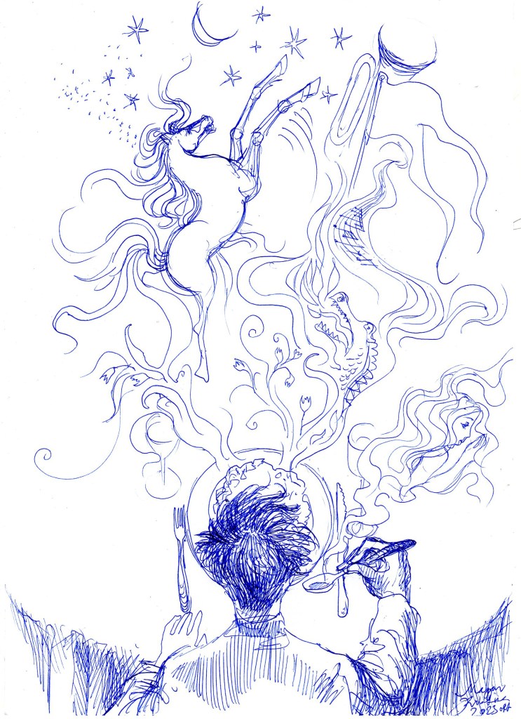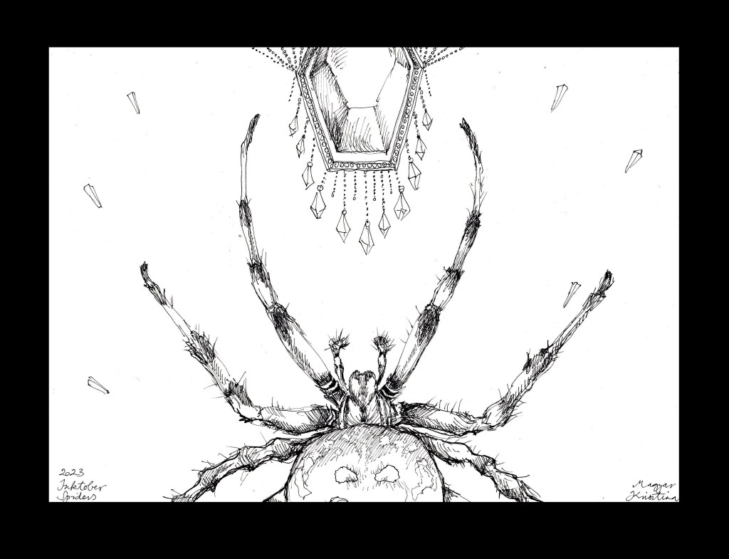 Inktober: minden októberi napra egy grafika! Rajzos emberként eddig csak örömmel konstatáltam mindig, október beköszöntével, hogy van ilyen is, és hogy de jó, hogy valaki kitalálta, mint ahogy a Hetirajzot is néhányan. De sohasem próbáltam bekapcsolódni. Viszont a mai képzőművészet-foglalkozáson megemlítettem a “nagyoknak” az Inktober-t, biztatva őket, hogy kapcsolódjanak. Addig-addig (…mi is a legjobb ösztönzés?… a jó példa?), amíg fogtam egy kezem ügyébe eső Touch liner-t, és rajzoltam két rajzot, mint “induló szettet” az első két nap javasolt témájára. Talán hatott, majd meglátjuk. A lényeg, hogy rajzolni jó, és jó volt ilyen szinten is bekapcsolódni, mutatni ezt feléjük. A jótékony, szelíd-szolid prés pedig néha tényleg jót tesz – így legalább születnek alkotások. Az Inktober által kitűzött napi témák követése – pl. első nap: “Álom/Dream”, második nap: “Pókok/Spiders” – azt is jelenti, hogy nem feltétlenül az eddig tőlem megszokott tematika jelent meg rajzaimon. Egy kis változatosság… (főleg, amikor a csak keretezni tervezett fekete szín átfolyt a pókos rajzba is, egészen meglepő képi világ jött létre : ))