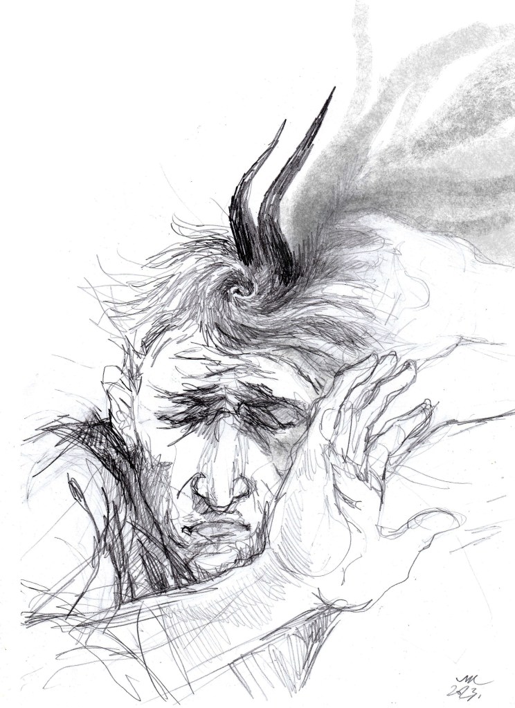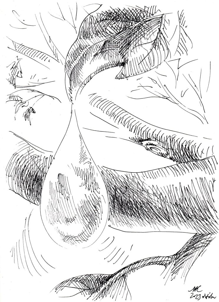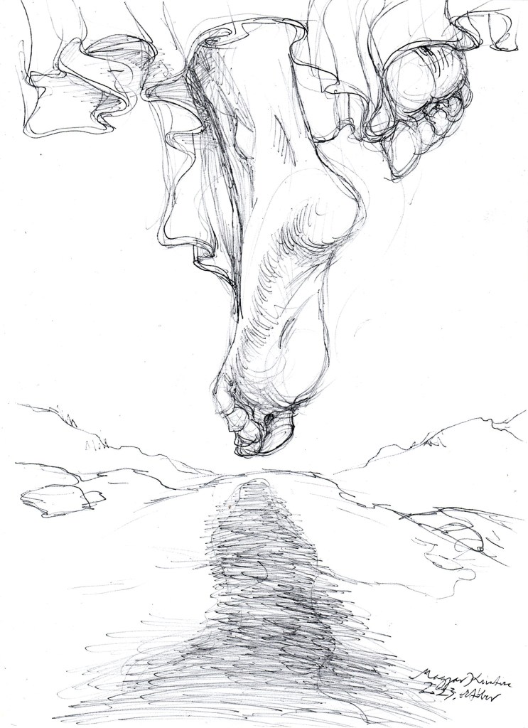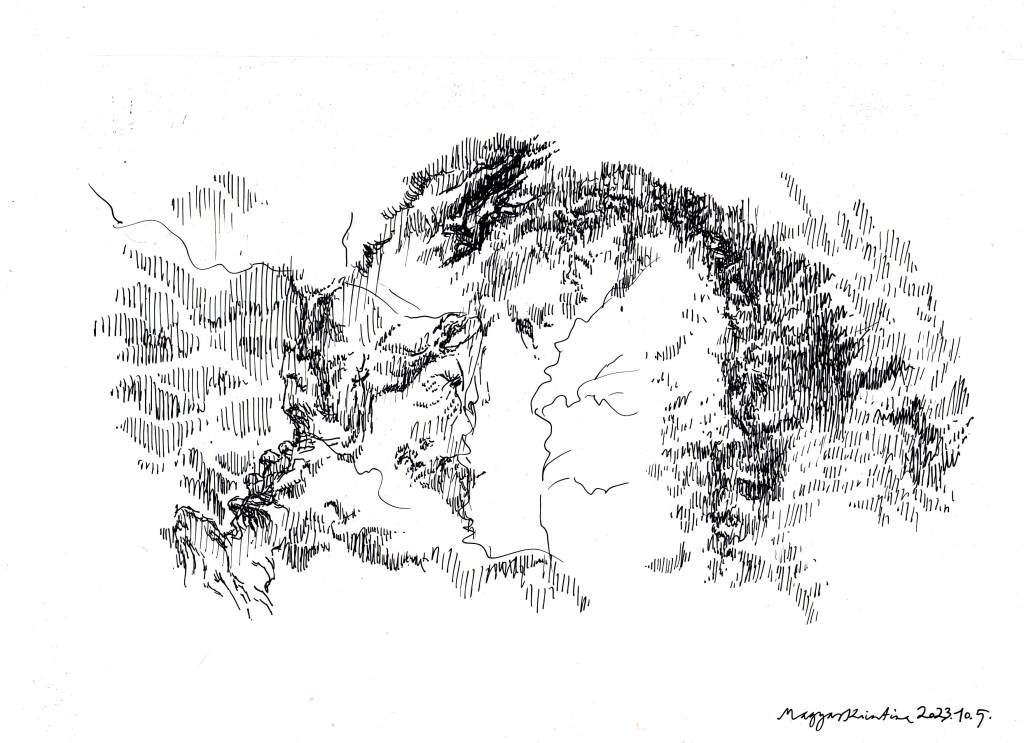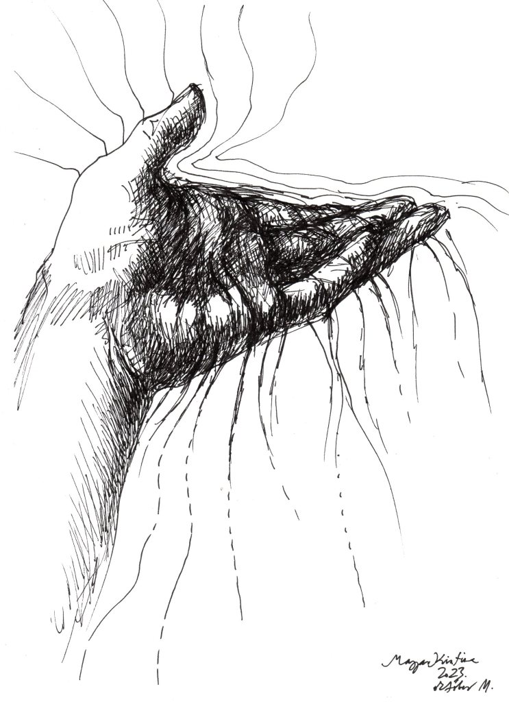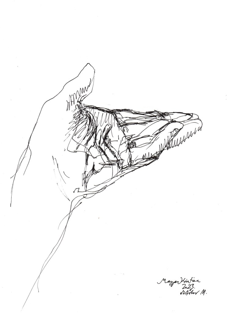 Nyilván a napi tanítás mellett nem jut sok időm “napi rajzra”, ez egyrészt lazít kicsit az elvárásokon és merev beidegződéseken, másrészt tanít elfogadni határaimat, kereteimet. Harmadrészt az új hozzáállás mellé új látásmódot is ad: ahelyett, hogy tökélyre igyekeznék vinni egy-egy grafikát, a spontaneitás magával hozza, hogy inkább elindítok mintsem befejezek, inkább jelzek mintsem kidolgozok, végül pedig egészen sok minden mást is bele tudok látni ezekbe a friss, gyors rajzokba.