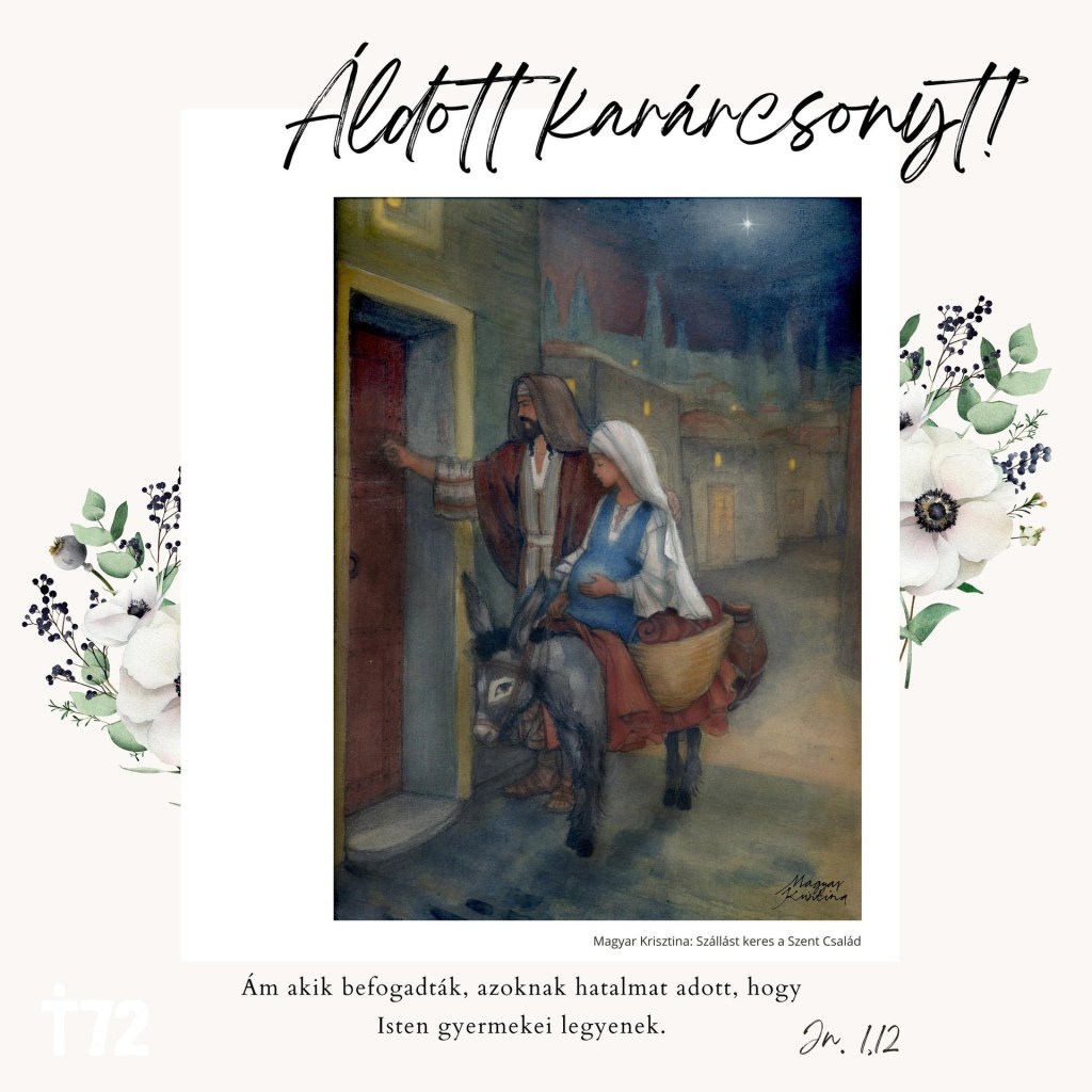 Karácsony közeledtével több megkeresés is érkezett felém műveim felhasználására. Mindig öröm az ilyen érdeklődés, ez a legjobb visszajelzés! Először a kaposvári “Meghívtál” zenekar kért karácsonyi koncertjéhez képet tőlem – végül nem is már meglévőt, hanem új festményt tudtam nekik átadni, annyira inspiráltak! A 72 Tanítvány Mozgalom is egyik adventi képemet, a “Szállást keres a Szent Család” címűt osztotta meg karácsonyi üdvözletként. Sapszon Ferenc, a Kodály Zoltán Magyar Kórusiskola alapítója pedig Karácsonyi Koncertjük programfüzetének hátoldalára tette a betlehemi Szent Családot ábrázoló képemet, jókívánságaival kiegészítve. Iskolám, az Aelia Sabina Alapfokú Művészeti Iskola nagy örömömre az “Igen, az Élet megjemet…” című festményemet választotta idén karácsonyi üdvözletéhez. Tihanyban az apátsági Rege Cukrászdában kivetítőkön láthatók karácsonyi témájú képeim, ahol a t’ARS Műhely tagjaként veszek részt a kiállításon. Leányfaluban a Faluházban is Vízkeresztig láthatók adventi-karácsonyi képeim. Nagy öröm és megtiszteltetés mindez! Mindenesetre – mert egyszerűen “muszáj volt” – rajzoltam egy idei friss rajzot is karácsonyra (“Gaudete”)…