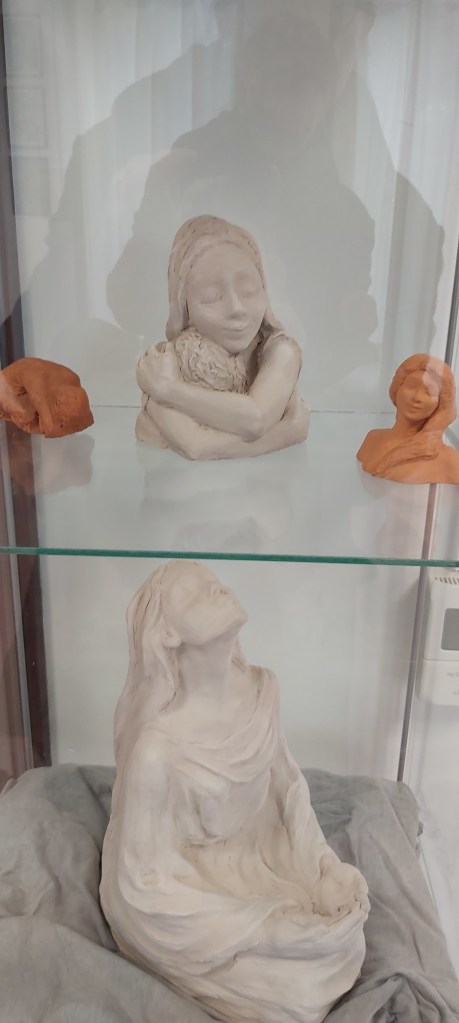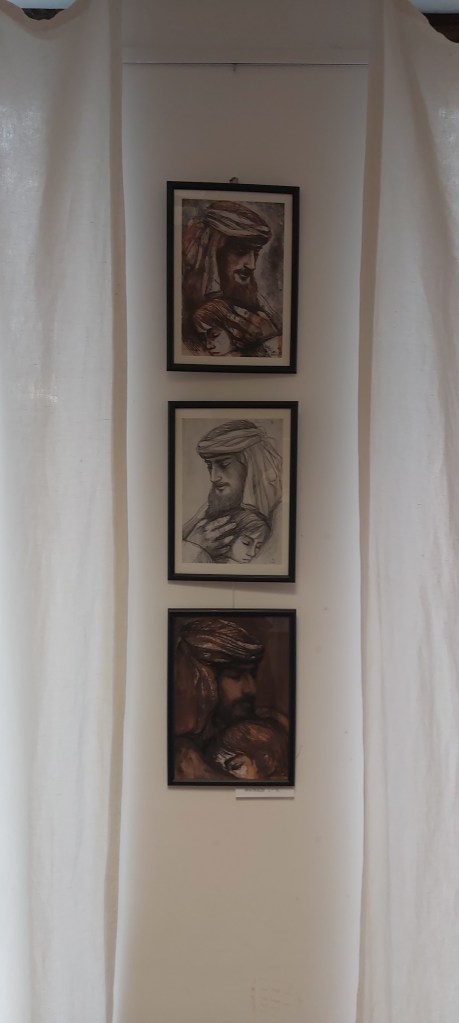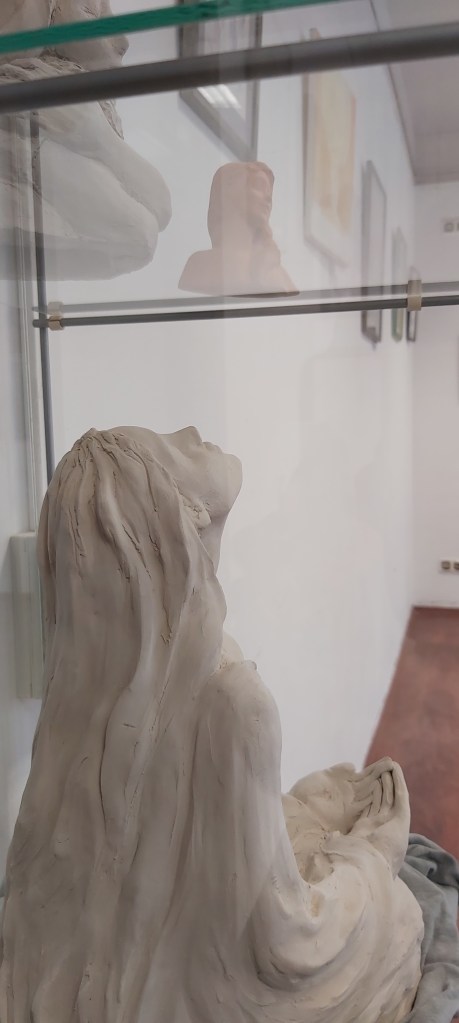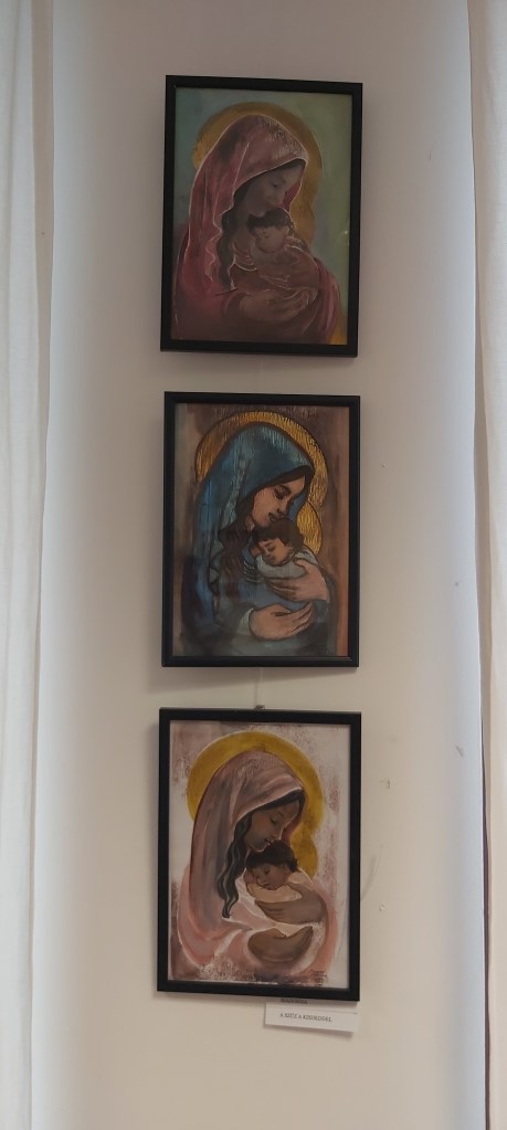 Lassan lezárul a leányfalusi Faluházban látható tárlat, szerdán bontjuk, visszük. A képek egy része visszatér tulajdonosához – köszönöm, hogy ezekre a hetekre kölcsönkaptam őket! – a maradék hazajön, illetve keresi helyét: jó részük valószínűleg egy vidéki lelkiségi központ falaira kerül – szeretem, ha egy kép él valahol és örülnek neki, nem pedig fiókban pihen. Megosztok néhány fotót a teremről, munkákról, hogy maradjon itt is valami nyom. Köszönöm a meghívást és a bizalmat, örülök, hogy erre a bő hónapra 52 képem és 4 szobrom helyet kaphatott itt a Faluházban!