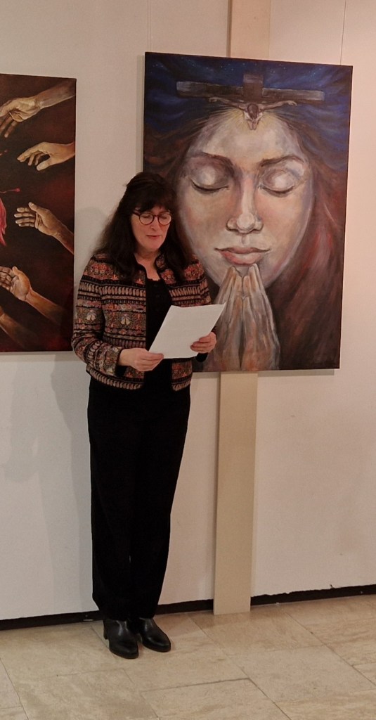 2024 február 17-én Veszprémben az Agóra Művelődési Központban megnyílt a “Lélekképek” című, nagyböjtre hangoló kiállításunk. Interaktív jellegű megnyitóval, kérdéseket, gondolat-indítókat tartalmazó, választható-húzható kártyákkal is készültünk. Négy fő téma, kapcsolati irány köré rendeztük a tárlatot: kapcsolatban magunkkal, a világgal, embertársainkkal, Istennel. A megnyitón t’ARS műhely 7 kiállítója saját gondolatait osztotta meg ezen irányok mentén, egy-egy saját alkotáshoz fűzve. A zenei szolgálatot egyik társunk férjével, Lőrincz Milánnal együtt jómagam vittem gitárral. Instrumentális átkötéseket játszottunk az egyes fázisok között, illetve a megnyitó elején és végén a közös éneklést is vezettük.