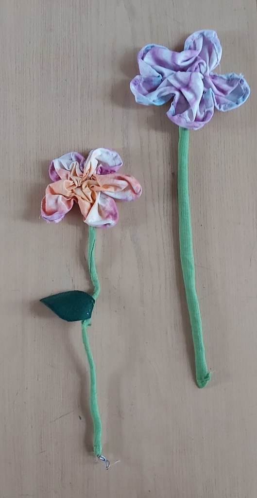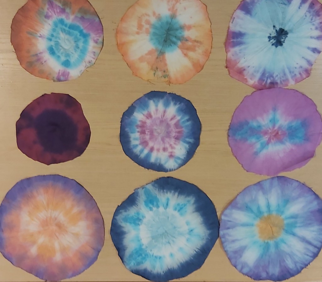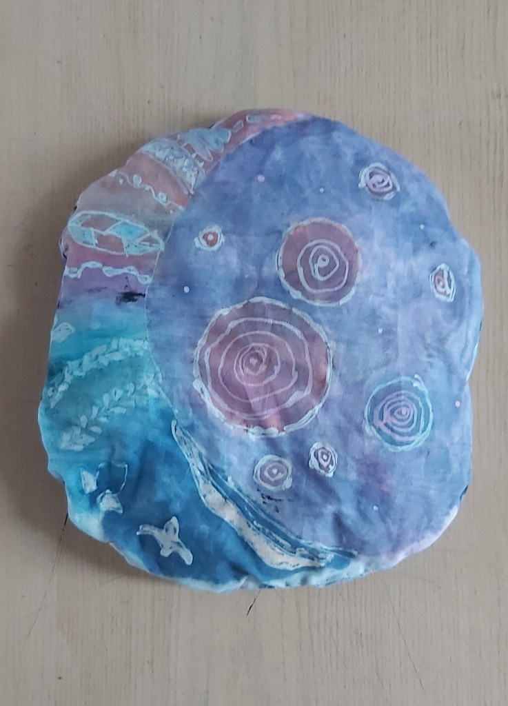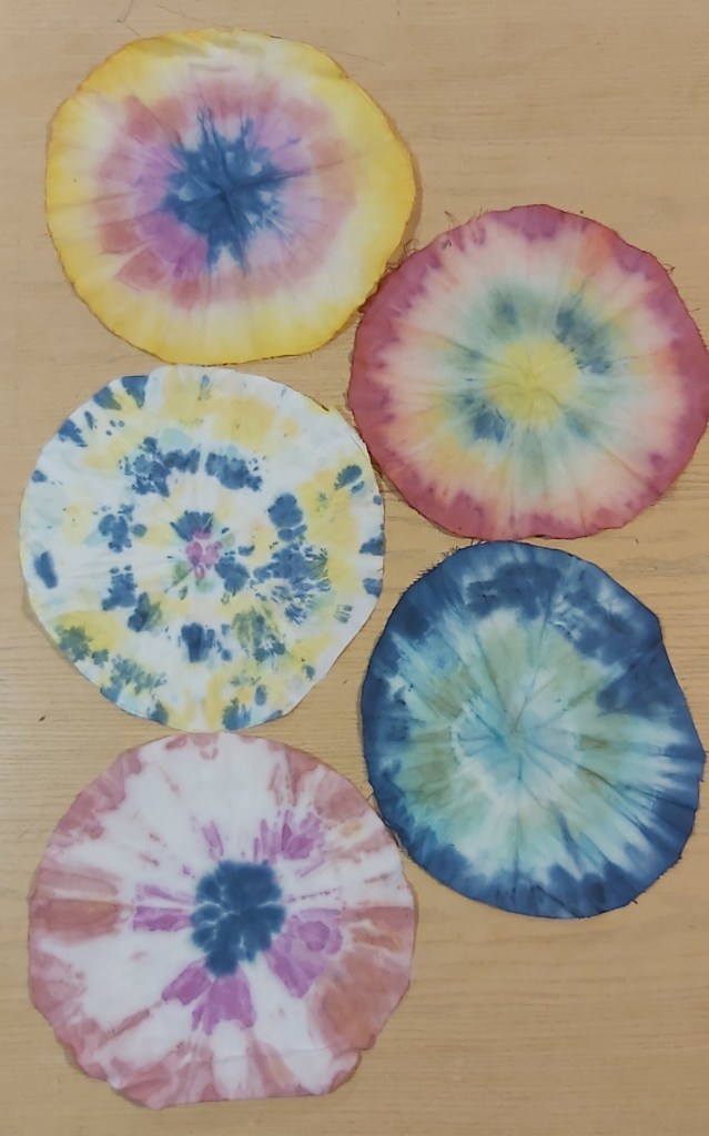Mint a szem szivárványhártyái, ahány gyerek, annyiféle szépség születik az Ürömi Művészetis növendékeim keze alatt. Ez is egy nagyobb, közös projektmunka része, virágok lesznek majd a kötözős batikolt textilekből, de már ennek a fázisnak is megvolt az öröme. Külön megünnepeltünk minden egyes darabot, hiszen – bár ők tervezték, festették, mégis – minden elkészült munka valamennyire meglepetés is lett, mint egy ajándék egy valódi születésnapon. (Ezért boldog születésnapot énekeltek minden kicsomagoláskor az éppen kibontónak…! Ezek jó pillanatok 🙂) Csillag-párnák is készültek, a virágok is bontogatják szirmaikat.