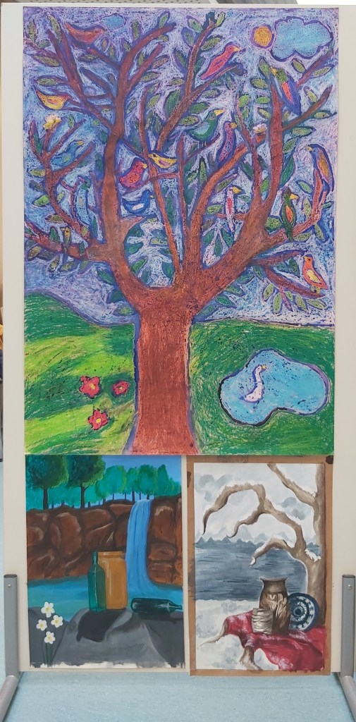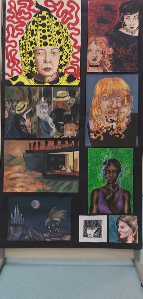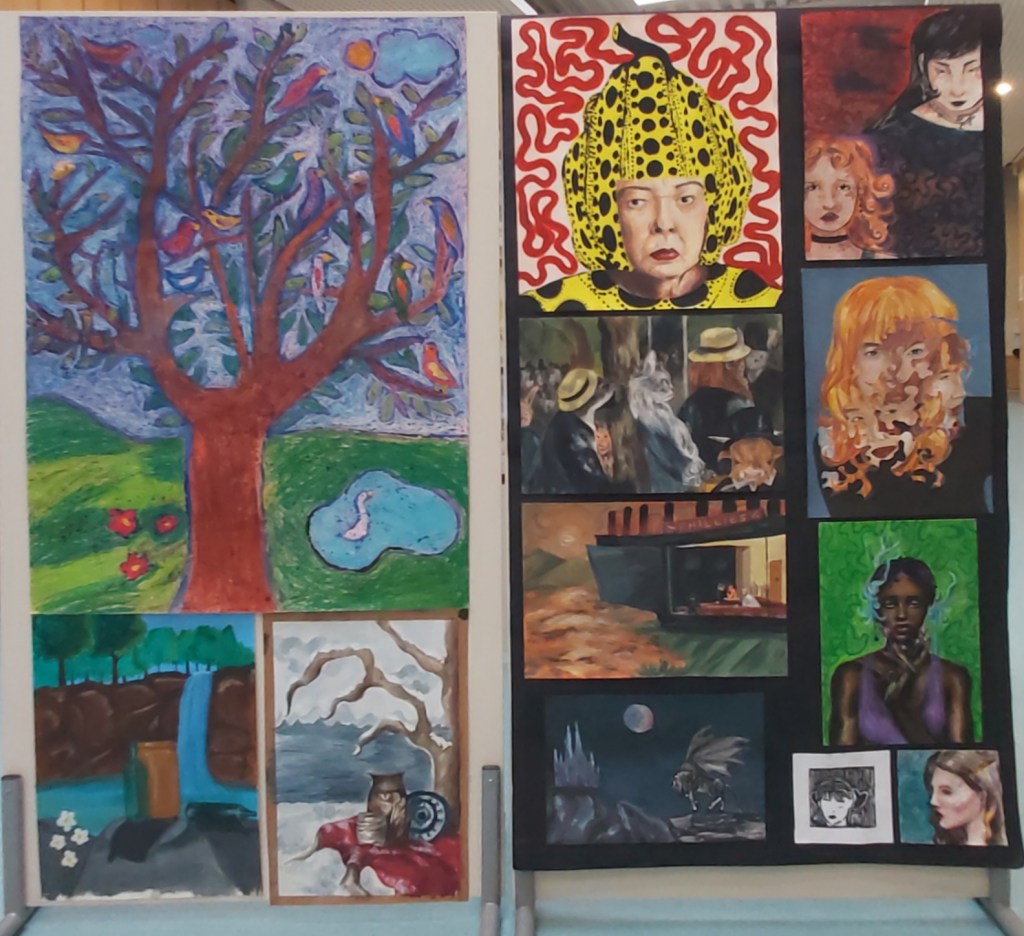Megnyílt kiállításunk! Megnyitotta Zombori Béla egyetemi tanár és Tóth Márta tanszaki munkaközösség-vezetőnk, zenélt Papp Tímea fuvola-tanár kollégánk tanítványaival, köszönjük! Szép termésünk lett tanév végére, jó volt látni egyben mindünkét. (A bevezető képen képzős tanszakunk 7 tanára.) Néhány kép a megnyitóról alább, részben saját, részben iskolánk honlapjáról kölcsönözve, saját tanítványi munkákra fókuszálva – a valódi kiállított anyag ennek kb. 7-szerese… 2024 május 27-ig meg lehet még nézni a kiállítást!