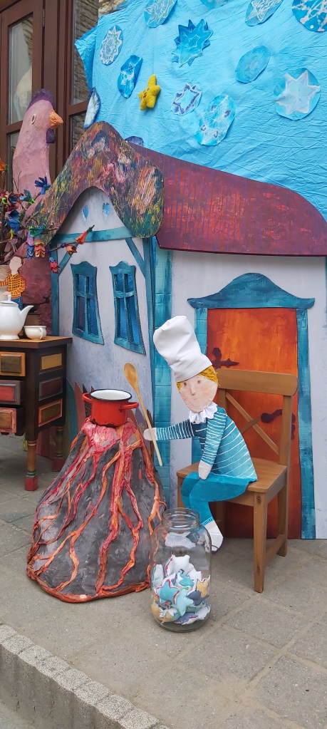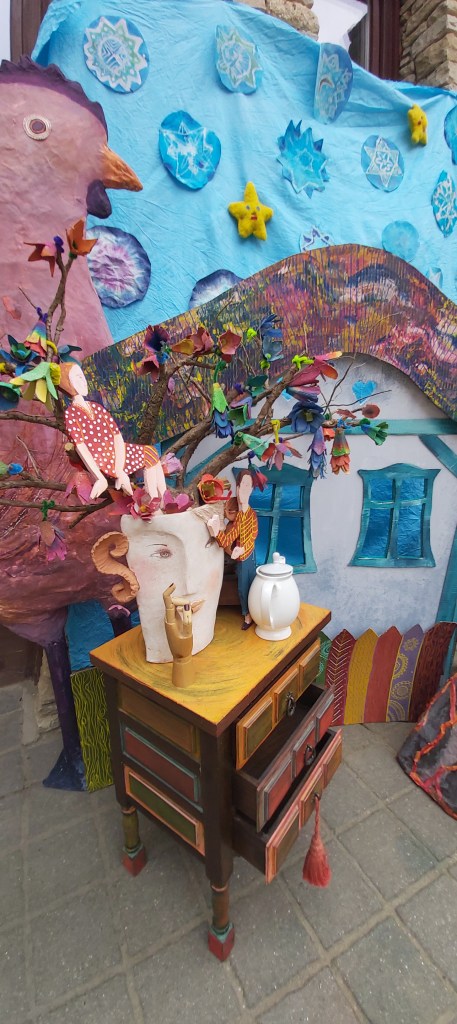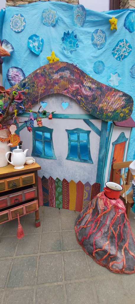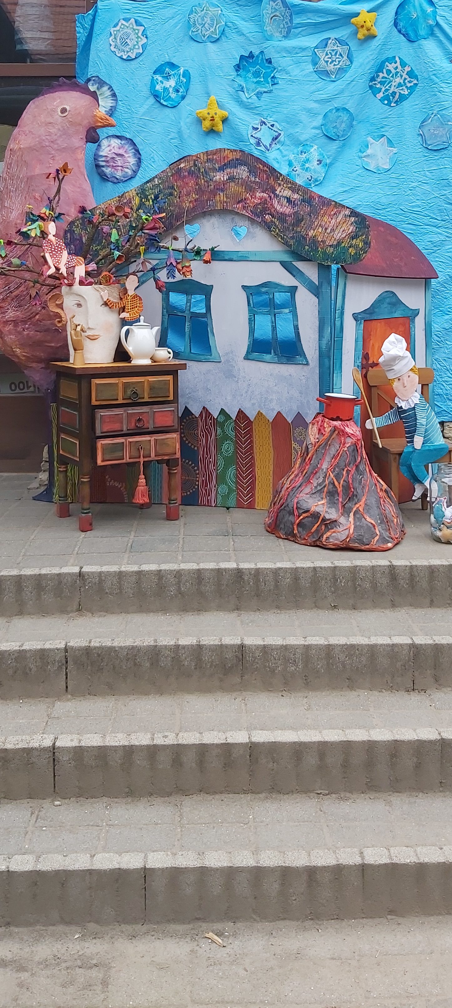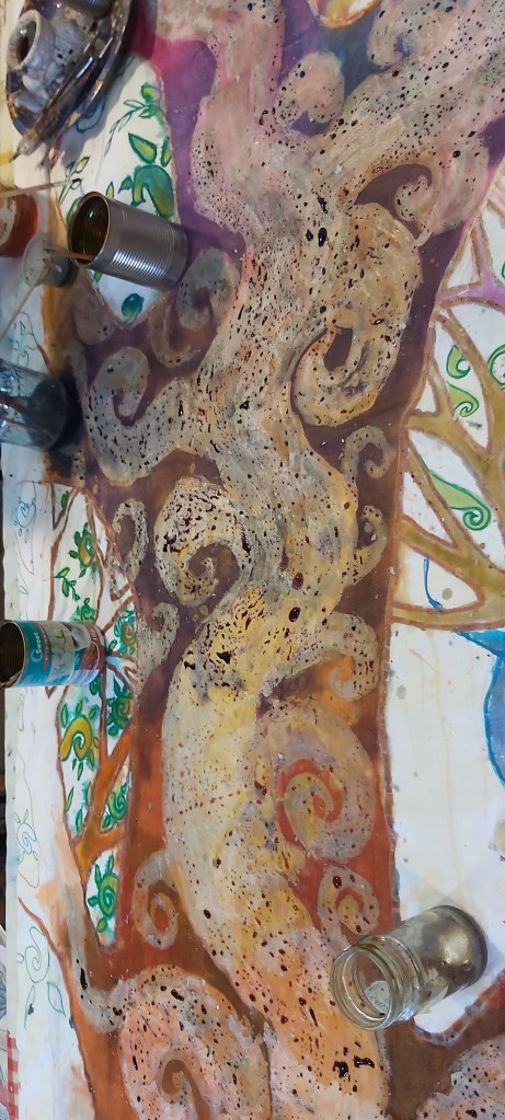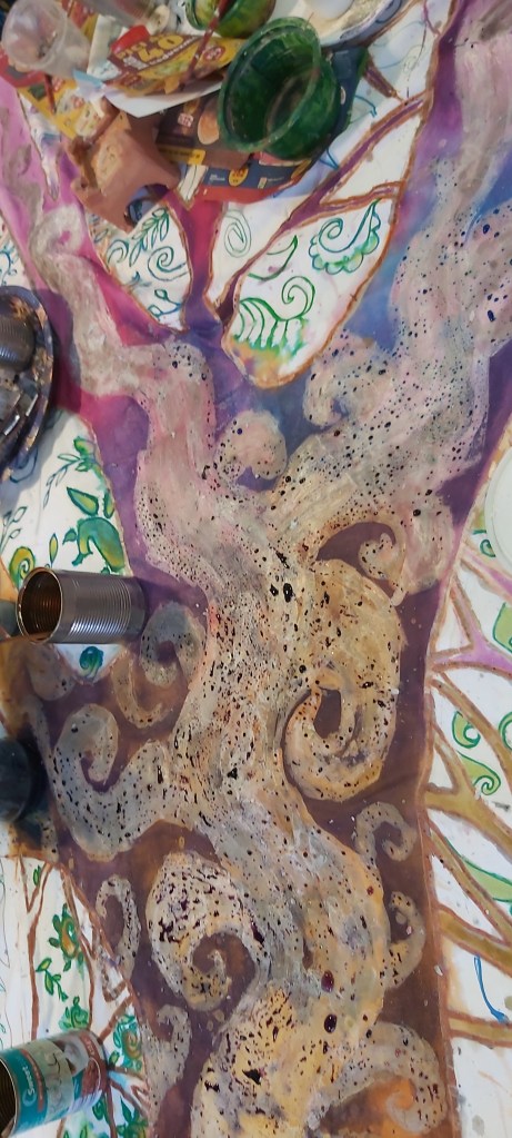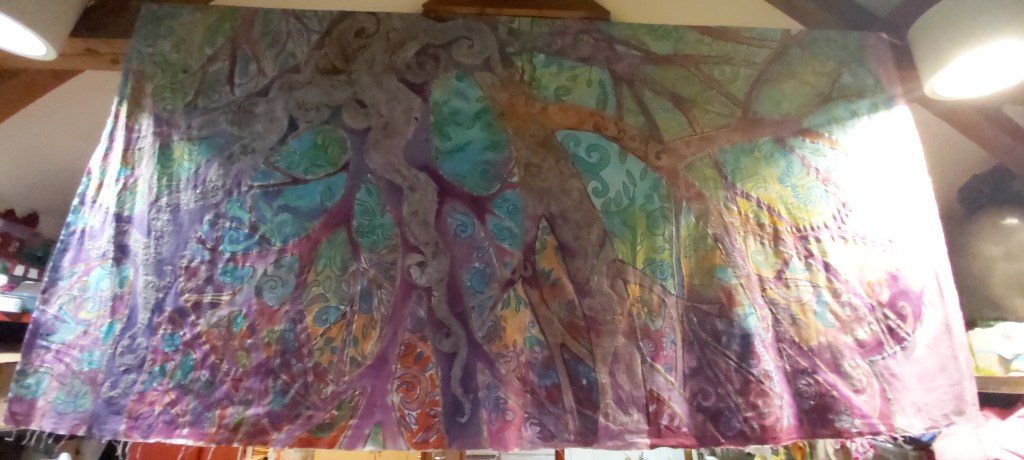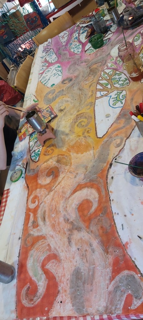 Nagy projektmunkába vágtunk idén az ürömi Művészeti Iskolában, együtt dolgozik rajta mindhárom képző/iparművészeti szakműhely, igazi összmunka, szépen alakul, bízunk benne, hogy gyönyörű lesz a végeredmény (június 7-én nyílik kiállításunk a szentendrei MANK galériában). Három színen három életképet jelenítünk meg objektekkel, bábokkal, valós és fikciós elemekkel, grafikai-festészeti, kerámia és textil technikákkal, úgy, hogy az egyes képek maguk is sokrétűek és komplexek, mintegy külön-külön kibontható történetek, rengeteg áthatással. Az egész egy összekapcsolódó, szép nagy egésszé áll majd össze reményeink szerint, az emberi életút különböző fázisaihoz kapcsolódva. Ma az általunk (textil műhely) készített batikolt fa-hátteret, ennek elkészülésének fázisait osztom meg, de még ezer osztható szépség lesz.