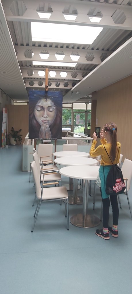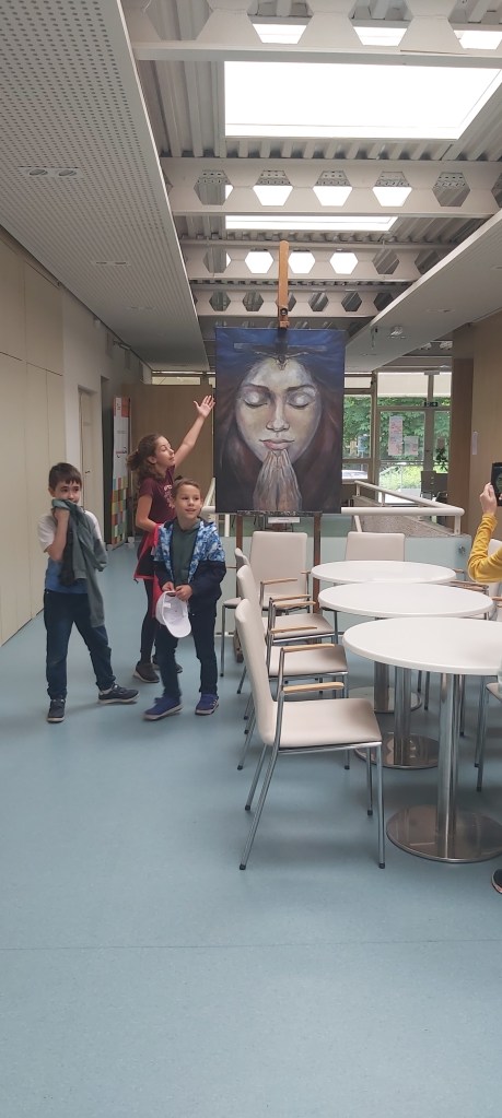 A héten az Aelia Sabina-s harmadikos-negyedikeseimmel megnéztük az ÓKK-s évzáró kiállításunkat, mellette pedig a művésztanár-kiállítást. Minden alkalommal azt játsszuk ilyenkor, hogy kedvenc képeket-szobrokat választunk,egyet-kettőt vagy hármat, és mindenki kap néhány percet bemutatni a kiválasztott műveket, indoklással. Hihetetlen jó kis tárlatvezetés kerekedik mindig belőle! A gyerekek őszinték, játékosak, örömteliek! A művészetet is ilyen eredeti módon élik és élvezik. Idén külön öröm volt számomra, hogy tanítványaim a művész-tanár kiállításon is választottak kedvenceket, köztük az én alkotásaimat is sokan, elmondásuk szerint nem elfogultságból 🙂! Komoly indoklással! Nagyon boldoggá tettek. Ezeket a napokat mindig egy jó kis fagyizás zárja, néha egész évben erre várnak. Nagyon jó kis csapat, szeretem őket (a többi tanítványomat is 🙂). Íme néhány kép erről a napról. A fotókon az alkotók, a csoportképeken műveik mellett.