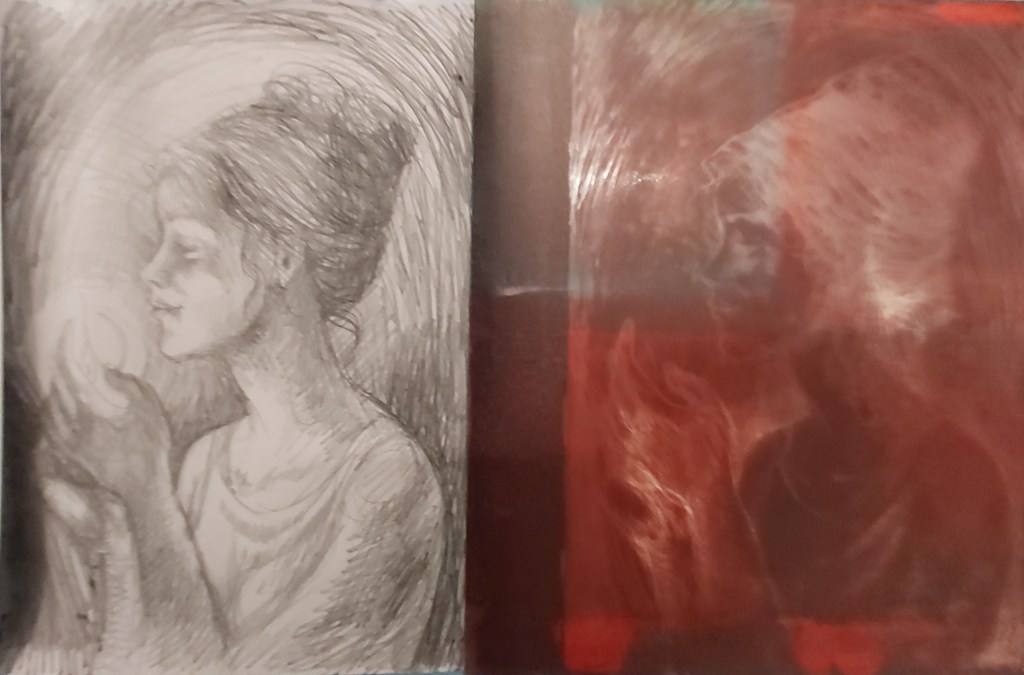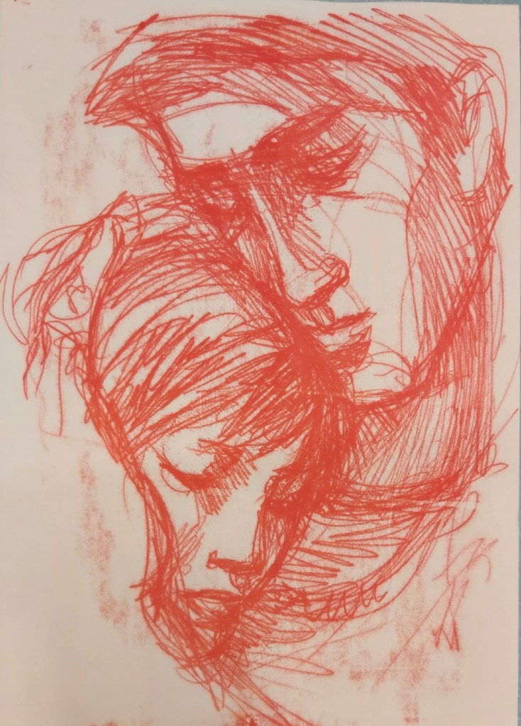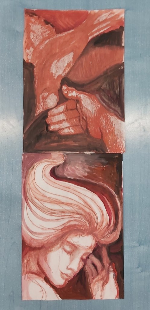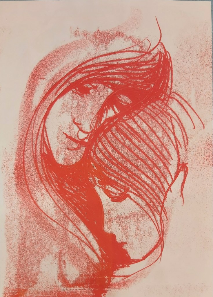 Ezek a fenti (szén- és kréta-) rajzok a legfrissebbek, tegnap készültek. De az itt megosztott “óraközi” rajzok, festmények mind ebben a tanévben készültek, szénrajzhoz, tollrajzhoz, monotípiához, krétarajzhoz.