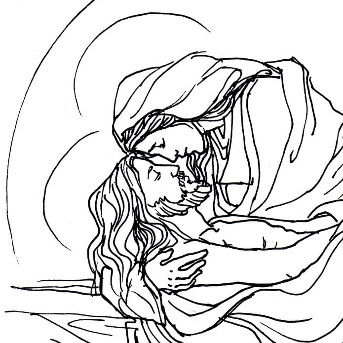 “Szent József álma” 21×30 cm grafit, kartonon (a FAFCE-EAC “Ki nekem Szent József?” nemzetközi képzőművészeti pályázat különdíja, 2023. ) Kezek I.,II., II.